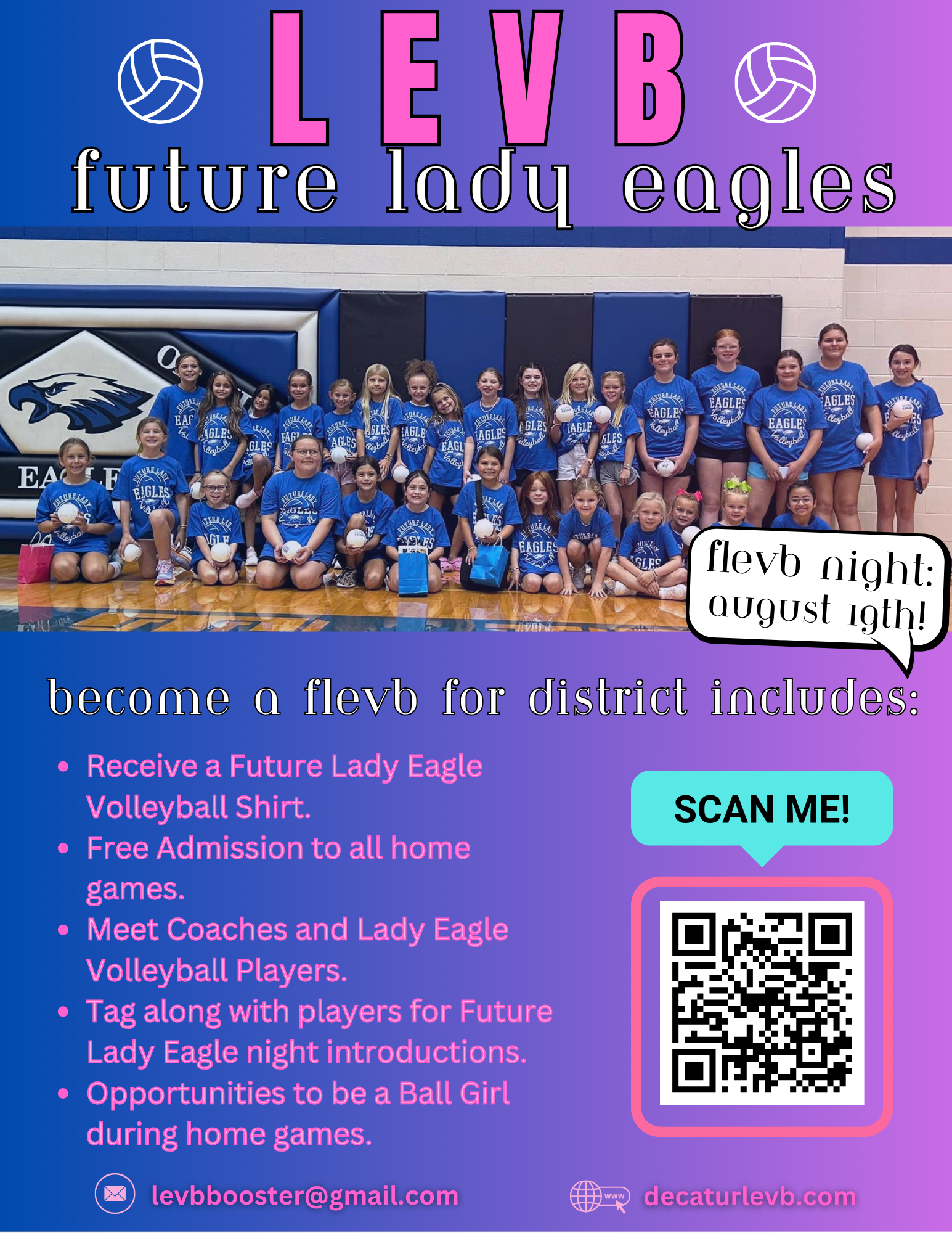 *Make Checks Payable to LEVB Booster Club* - Mailing Address: LEVB Booster Club, PO Box 921, Decatur, TX. 76234 or Venmo: @levbbooster (Please specify Future Lady Eagle in Notes section on Venmo.)